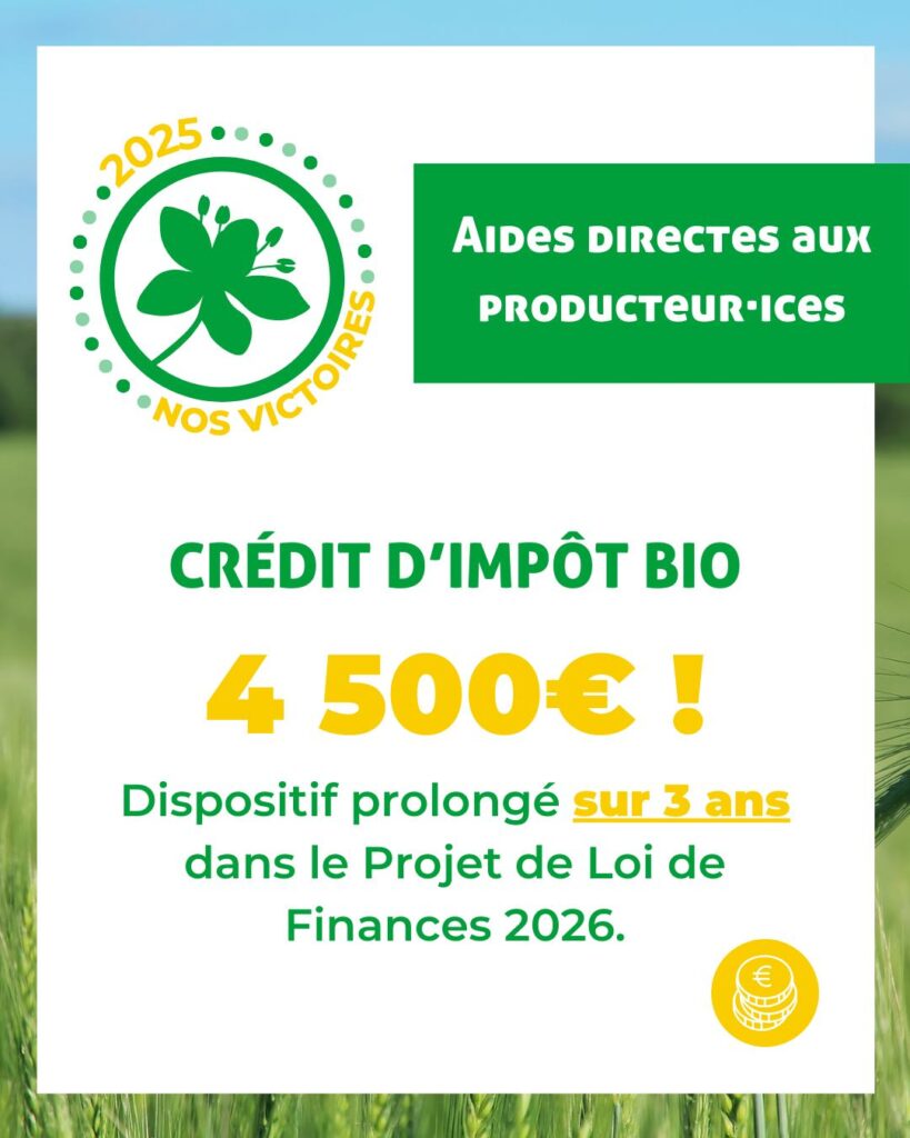 2026. Sans la mobilisation de la FNAB, ce dispositif essentiel aurait pu être supprimé ou limité à une seule année.