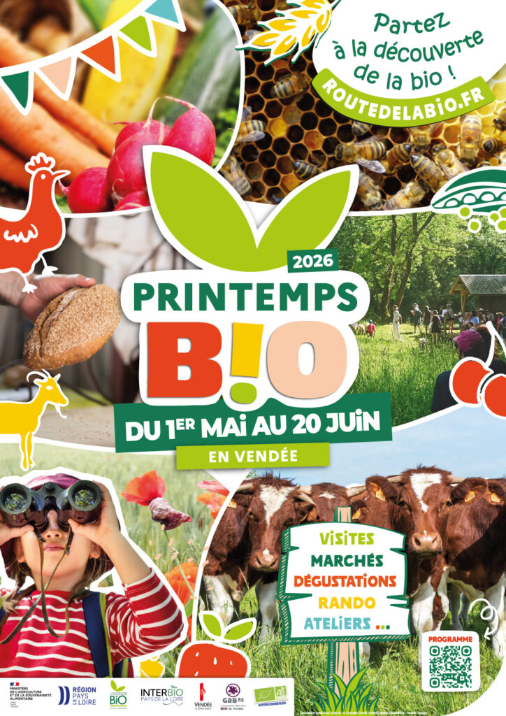 Comme tous les ans, le Printemps Bio, c’est du 1er mai au 21 juin avec des événements autour de l’agriculture et de l’alimentation bio organisés dans toute la France. Découvrez ou redécouvrez la bio avec les agriculteurs, les producteurs, les transformateurs et les distributeurs près de chez vous qui ouvrent leurs portes pour le Printemps Bio ! En Vendée, ce sont 17 évènements qui vont avoir lieu sur tout le département !!